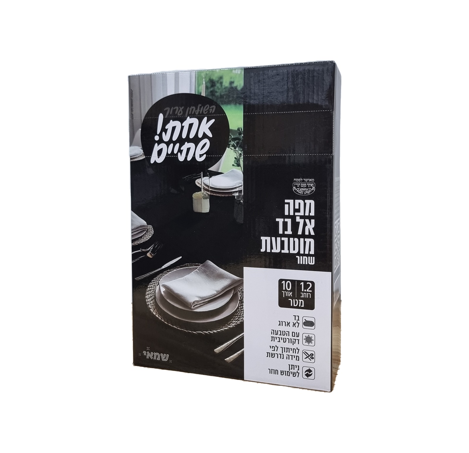 צבע: שחור אורך הגליל: 10 מטר רוחב: 1.2 מטר חומר: אל-בד מוטבע שימוש: שולחנות אירוח, שבתות, חגים אריזה: קופסה שומרת על המפה לאורך זמן שימוש חד-פעמי/חוזר: ניתן לשימוש חוזר בהתאם למצב